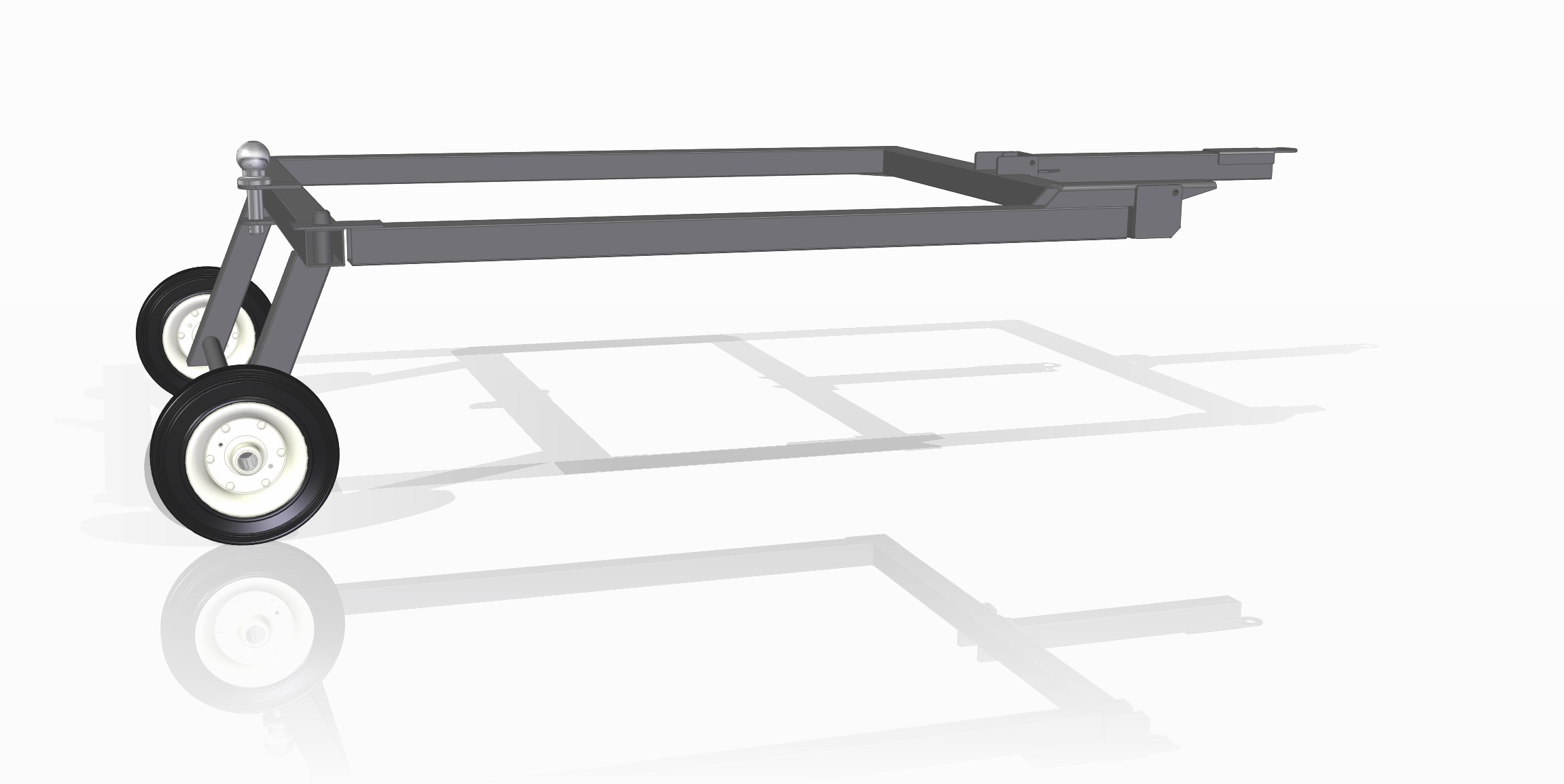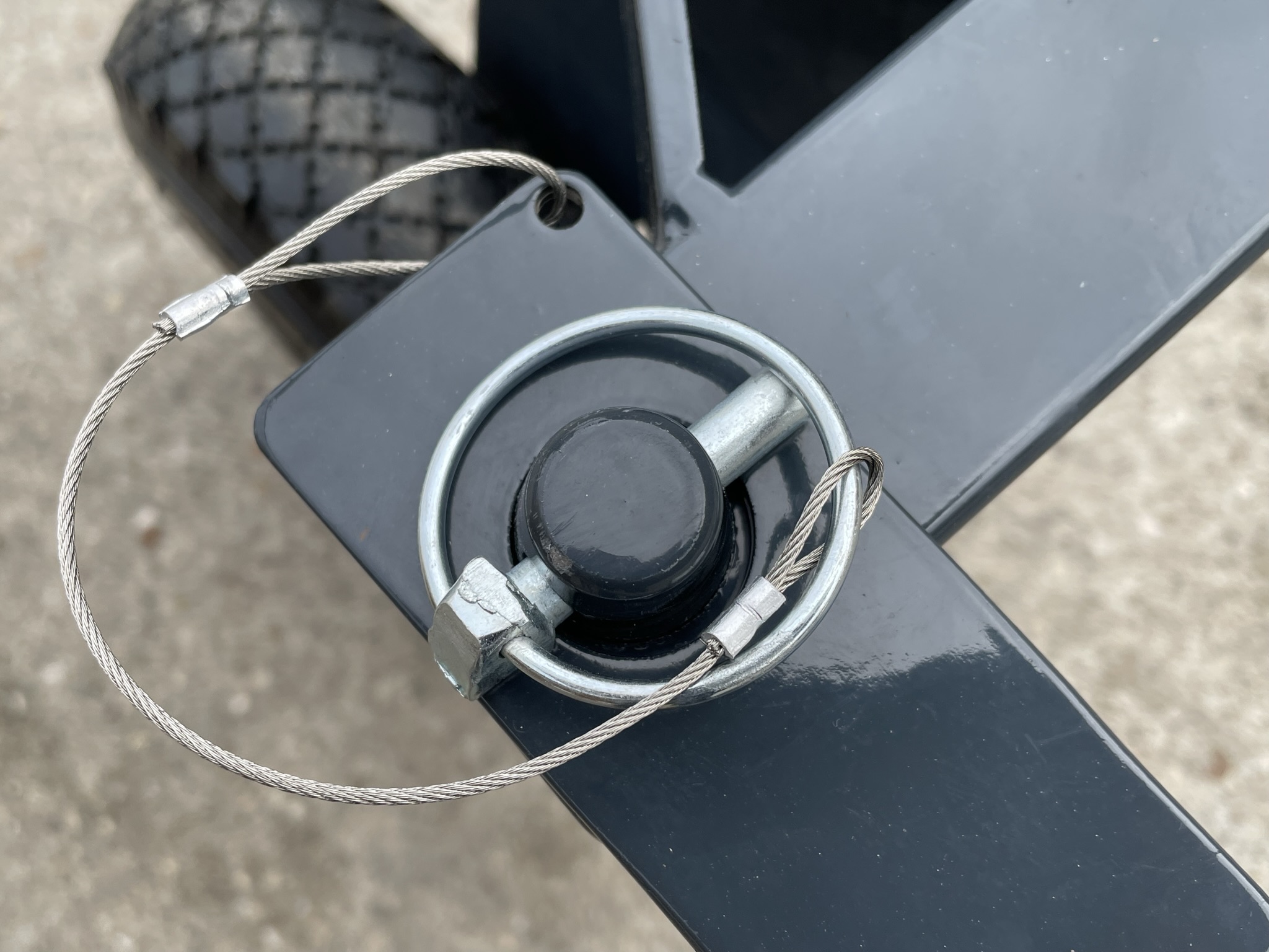 Zum beladen wird die rechte Seitenstrebe hochgeklappt und der MGB kann dort eingeschoben werden. Für den Transport wird die Seitenstrebe wieder zugeklappt und sicher verriegelt. Der Anhänger kann mit Zugmaul- oder Ösenkupplung angehängt werden. Die Variante mit Gummirädern eignet sich für befestigte Böden, die Lufträder für den Außenbereich und unbefestigten Untergrund.