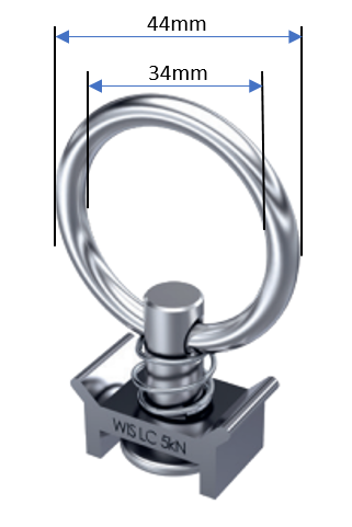 Der Endbeschlag für Airlineschienen ist ein einzelner Befestigungsbeschlag (Single Fitting) mit integriertem Ring, der sich komfortabel an Airlineschienen montieren lässt. Mit den Maßen 34 mm (L) x 62 mm (H) bietet er eine kompakte, stabile Verbindung am Schienenende. Die Zurrkraft (LC) beträgt 500 daN, wodurch ein sicheres Verzurren von Lasten entlang der Schiene gewährleistet ist. Dank des Rings ist eine einfache und schnelle Befestigung von Zurrgurten möglich.