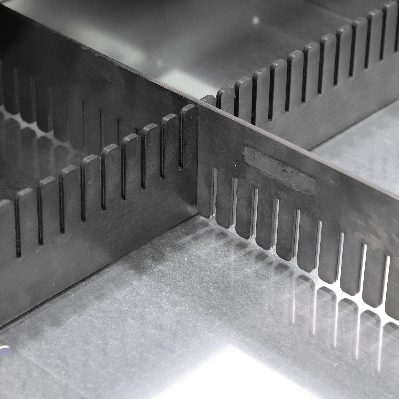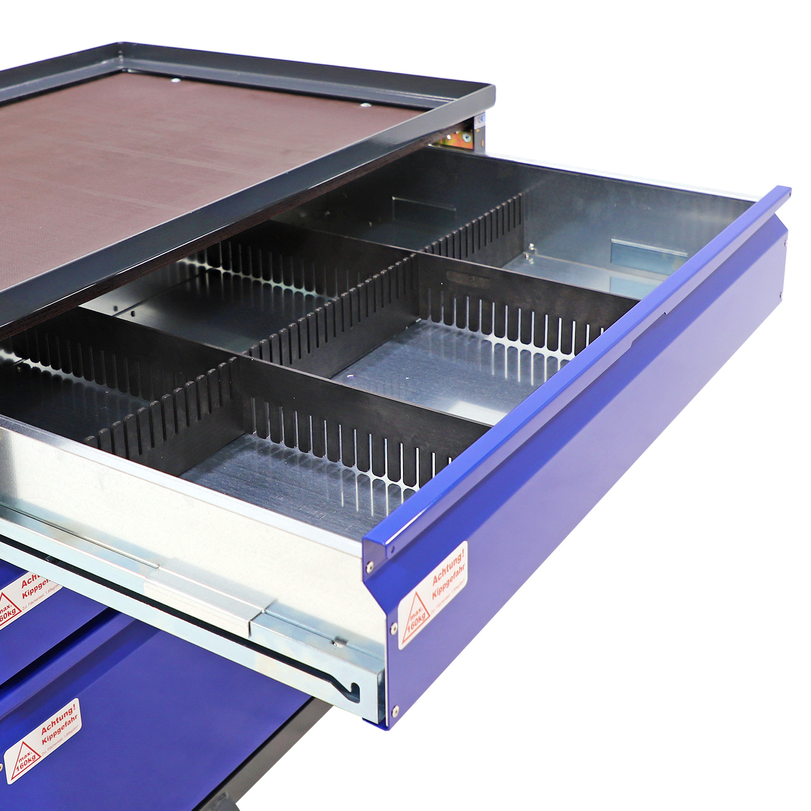 Die robusten Kunststoff-Elemente lassen sich flexibel positionieren und bieten eine langlebige Lösung für Schubladen in Industrie, Werkstatt, Lager und Logistik. Durch die flexible Anpassbarkeit wird eine optimale Nutzung des Schubladeninnenraums gewährleistet.